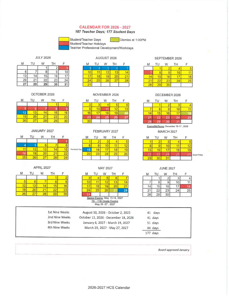 2026-2027 & 2027-2028 School Calendars